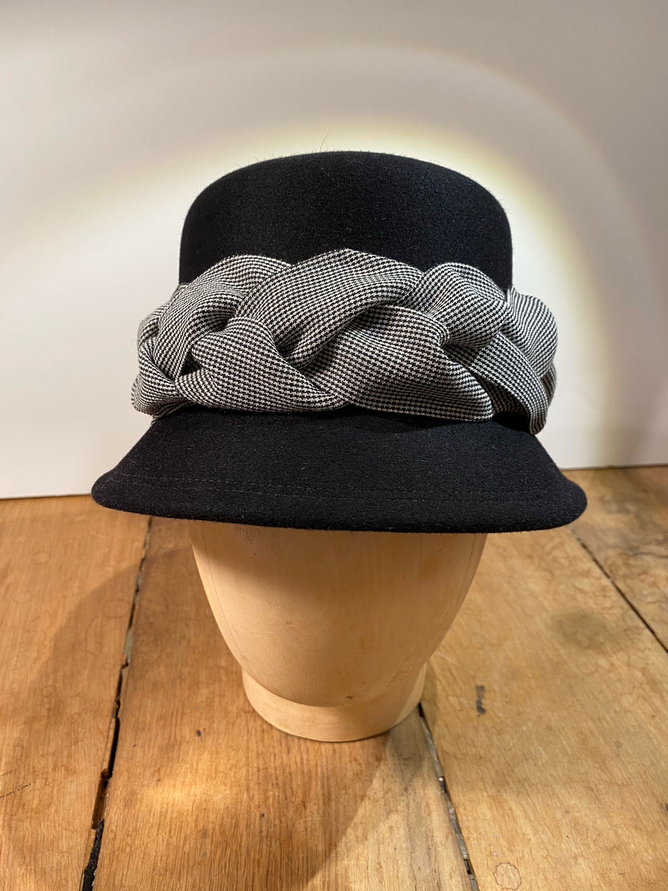 Zweiteiliger Fedora mit Hahnentrittmuster.