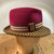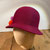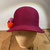 Diesen breitkrempigen Hut (Rand ca. 11cm) in einem schönen Bordeauxrot habe ich aus feinstem Haarfilz handgezogen. Der Rand des Hutes ist flexibel und unterstreicht den lässigen Charakter dieses Flappers. Garniert habe ich den Hut mit einem selbst bestickten Ripsband im Boholook.
