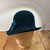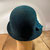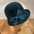 Diesen Hut in einem dunklen Flaschengrün habe ich aus feinstem Velourshaarfilz handgezogen, aus diesem Grund hat der Hut eine sehr schöne samtige Oberflächenstruktur. Die asymmetrische Krempe ist an der linken Seite leicht aufgeschlagen. Im Nacken habe ich den Hut kurz gehalten, so hast du keine Probleme das dein Schal oder Kragen den Hut hochschiebt. Garniert ist der Hut mit einer im Farbton leicht abgesetzten Ripsbandschleife.