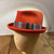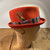 Diesen Hut in Orange habe ich aus feinstem Haarfilz handgezogen . Die angesagte Porkpieform verleiht dir einen lässigen Look. Die Krempe ist rundum aufgeschlagen. Garniert ist der Hut mit einem bunt gewebtem Band und Federn. Solltest du die Federn nicht mögen, kannst du sie einfach abnehmen.