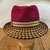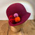 Eine sportliche Form in extravagantem Gewand. Den magentafarbenen Kopf des Hutes habe ich aus feinstem Haarfilz gezogen, die Krempe aus Wollfilz. Das Garniturband nimmt in Form und Farbe das Design des Hutes wieder auf.