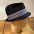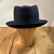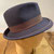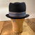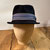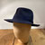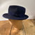 Klassischer, nachtblauer Fedora mit breitem Rand.
