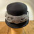 Diese Melone habe ich mit einer kurzen Krempe gezogen. Garniert ist der Hut mit einem leicht gefransten schwarzen Ripsband. Solltest du die Federn nicht mögen, kannst du sie einfach abnehmen.